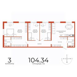 Продаётся 3-комнатная квартира в сданном доме (дом 8), срок сдачи: III-кв. 2025, общей площадью 104.34 кв.м., на 5 этаже. Дизайнерская отделка.