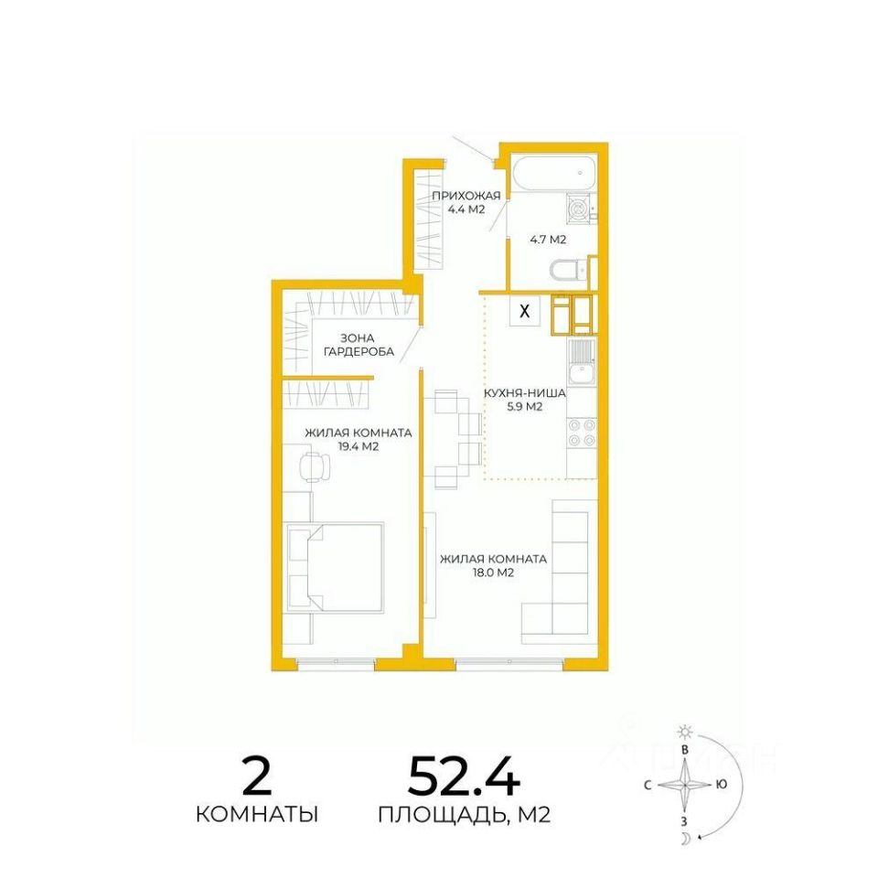 Продаётся 2-комнатная квартира в сданном доме (дом 14), срок сдачи: IV-кв. 2024, общей площадью 52.4 кв.м., на 12 этаже. Дизайнерская отделка.