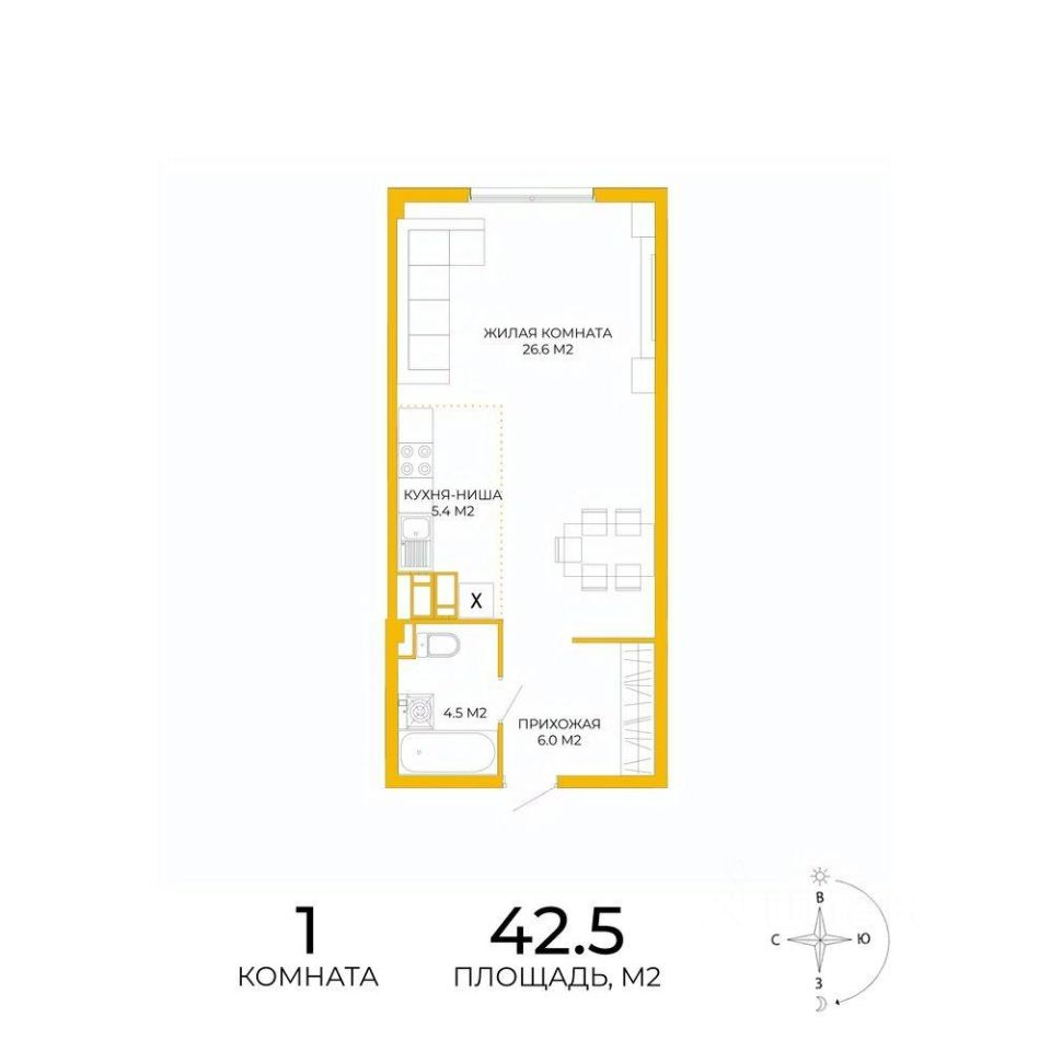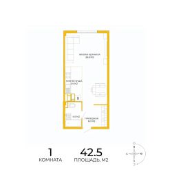 Продаётся 1-комнатная квартира в сданном доме (дом 14), срок сдачи: IV-кв. 2024, общей площадью 42.5 кв.м., на 13 этаже. Дизайнерская отделка.