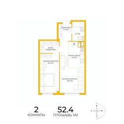 Продаётся 2-комнатная квартира в сданном доме (дом 14), срок сдачи: IV-кв. 2024, общей площадью 52.4 кв.м., на 13 этаже. Дизайнерская отделка.
