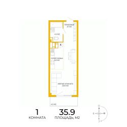Продаётся 1-комнатная квартира в сданном доме (дом 14), срок сдачи: IV-кв. 2024, общей площадью 35.9 кв.м., на 15 этаже. Дизайнерская отделка.