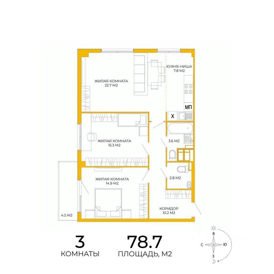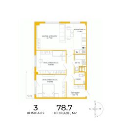Продаётся 3-комнатная квартира в сданном доме (дом 14), срок сдачи: IV-кв. 2024, общей площадью 78.7 кв.м., на 15 этаже. Дизайнерская отделка.