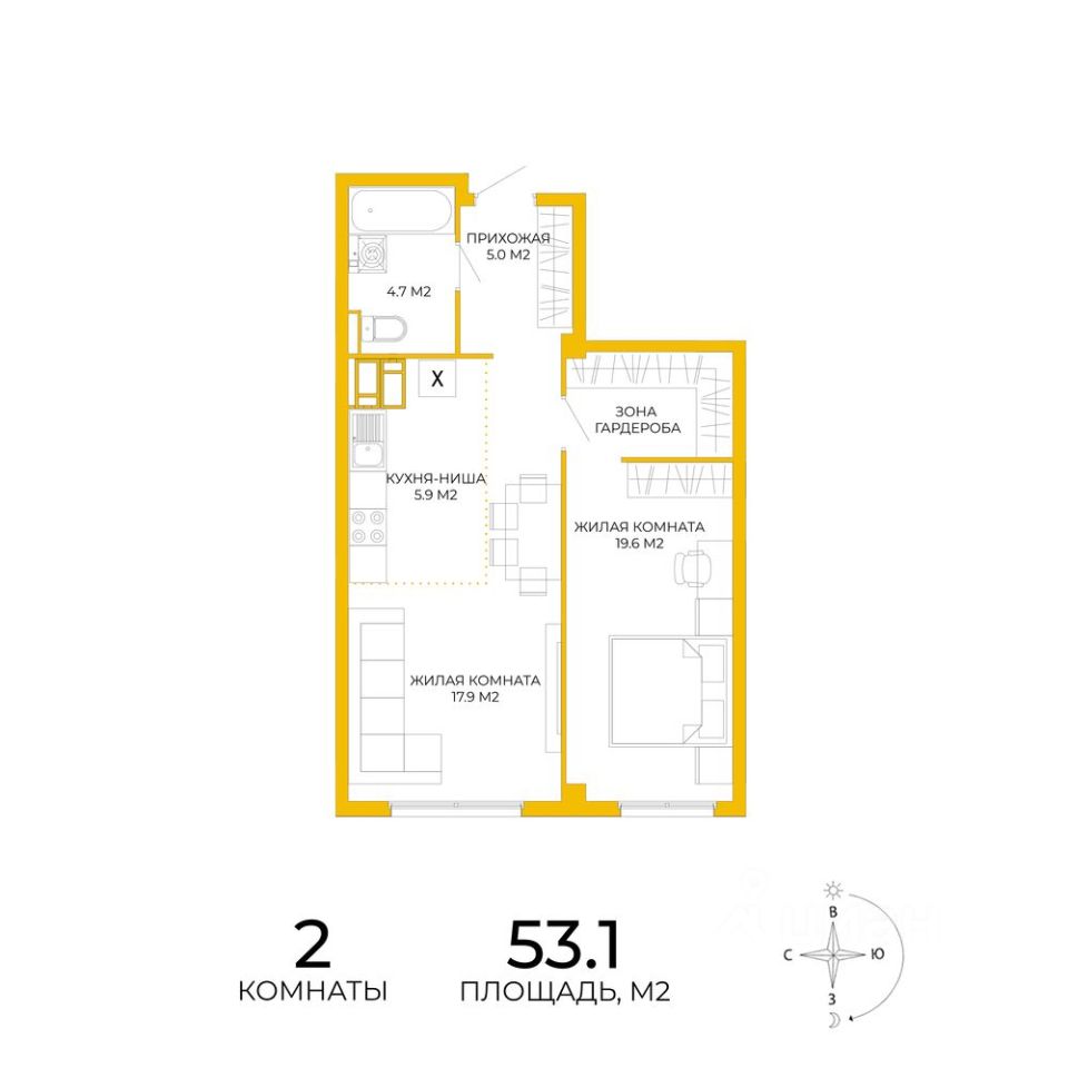 Продаётся 2-комнатная квартира в сданном доме (дом 14), срок сдачи: IV-кв. 2024, общей площадью 53.1 кв.м., на 16 этаже. Дизайнерская отделка.
