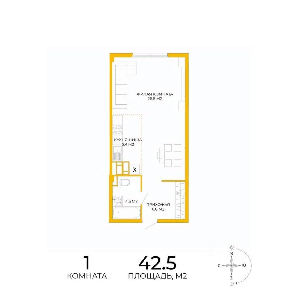 Продаётся 1-комнатная квартира в сданном доме (дом 14), срок сдачи: IV-кв. 2024, общей площадью 42.5 кв.м., на 17 этаже. Дизайнерская отделка.