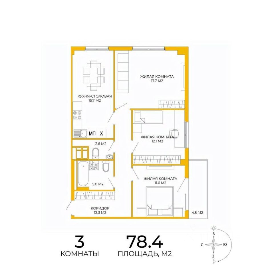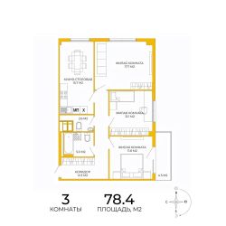 Продаётся 3-комнатная квартира в сданном доме (дом 14), срок сдачи: IV-кв. 2024, общей площадью 78.4 кв.м., на 17 этаже. Дизайнерская отделка.