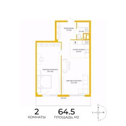 Продаётся 2-комнатная квартира в сданном доме (дом 14), срок сдачи: IV-кв. 2024, общей площадью 64.5 кв.м., на 9 этаже. Дизайнерская отделка.