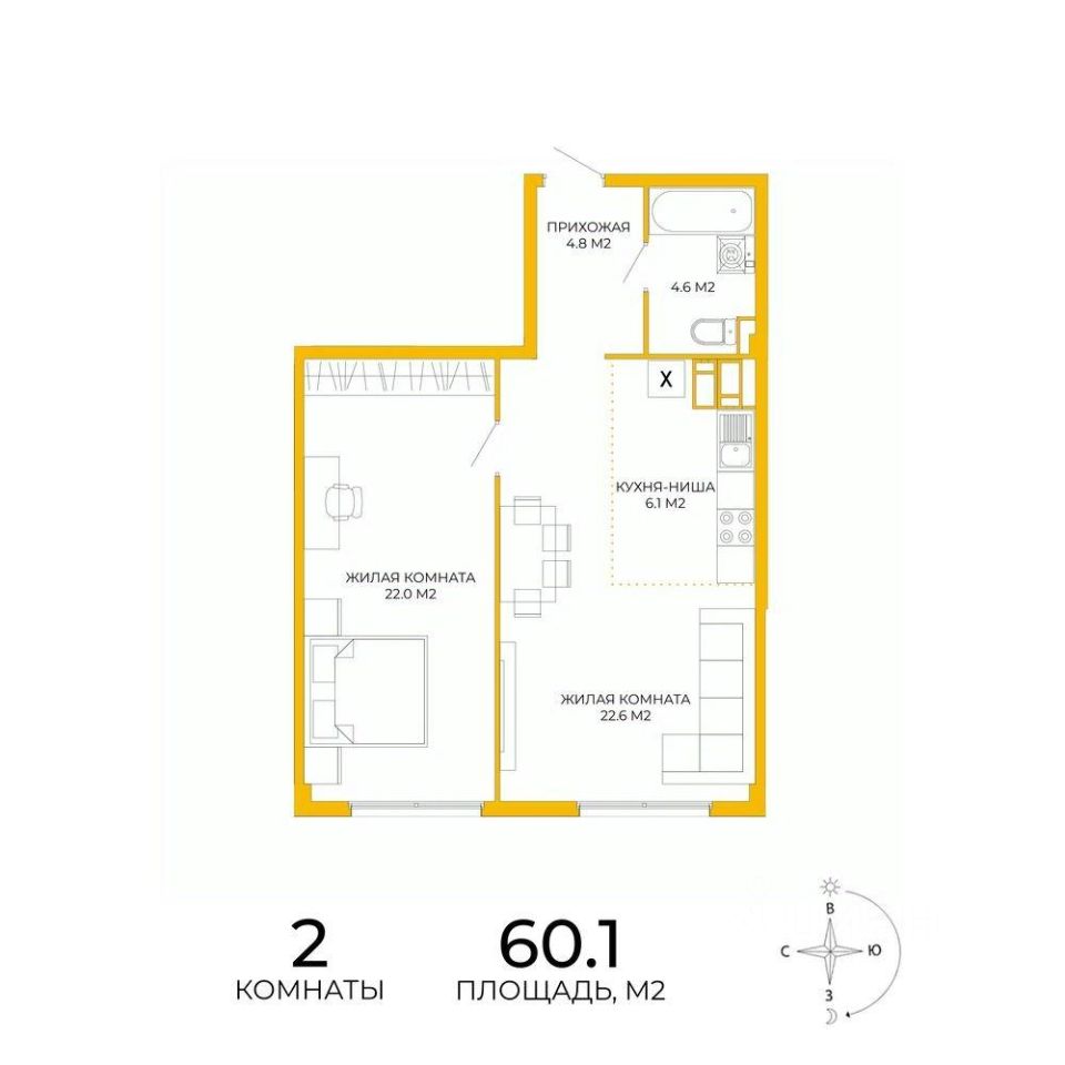 Продаётся 2-комнатная квартира в сданном доме (дом 14), срок сдачи: IV-кв. 2024, общей площадью 60.1 кв.м., на 9 этаже. Дизайнерская отделка.