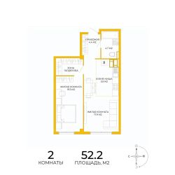 Продаётся 2-комнатная квартира в сданном доме (дом 14), срок сдачи: IV-кв. 2024, общей площадью 52.2 кв.м., на 9 этаже. Дизайнерская отделка.