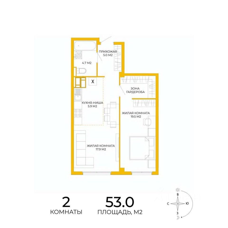 Продаётся 2-комнатная квартира в сданном доме (дом 14), срок сдачи: IV-кв. 2024, общей площадью 53 кв.м., на 9 этаже. Дизайнерская отделка.