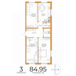 Продаётся 3-комнатная квартира в сданном доме (дом 9), срок сдачи: IV-кв. 2024, общей площадью 84.95 кв.м., на 12 этаже. Дизайнерская отделка.