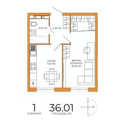 Продаётся 1-комнатная квартира в сданном доме (дом 9), срок сдачи: IV-кв. 2024, общей площадью 36.01 кв.м., на 11 этаже. Дизайнерская отделка.