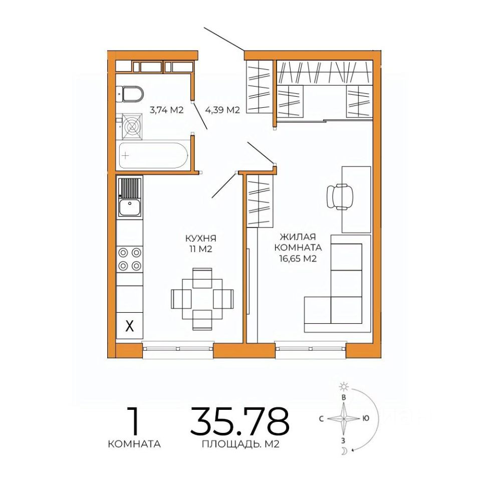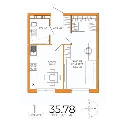 Продаётся 1-комнатная квартира в сданном доме (дом 9), срок сдачи: IV-кв. 2024, общей площадью 35.78 кв.м., на 3 этаже. Дизайнерская отделка.