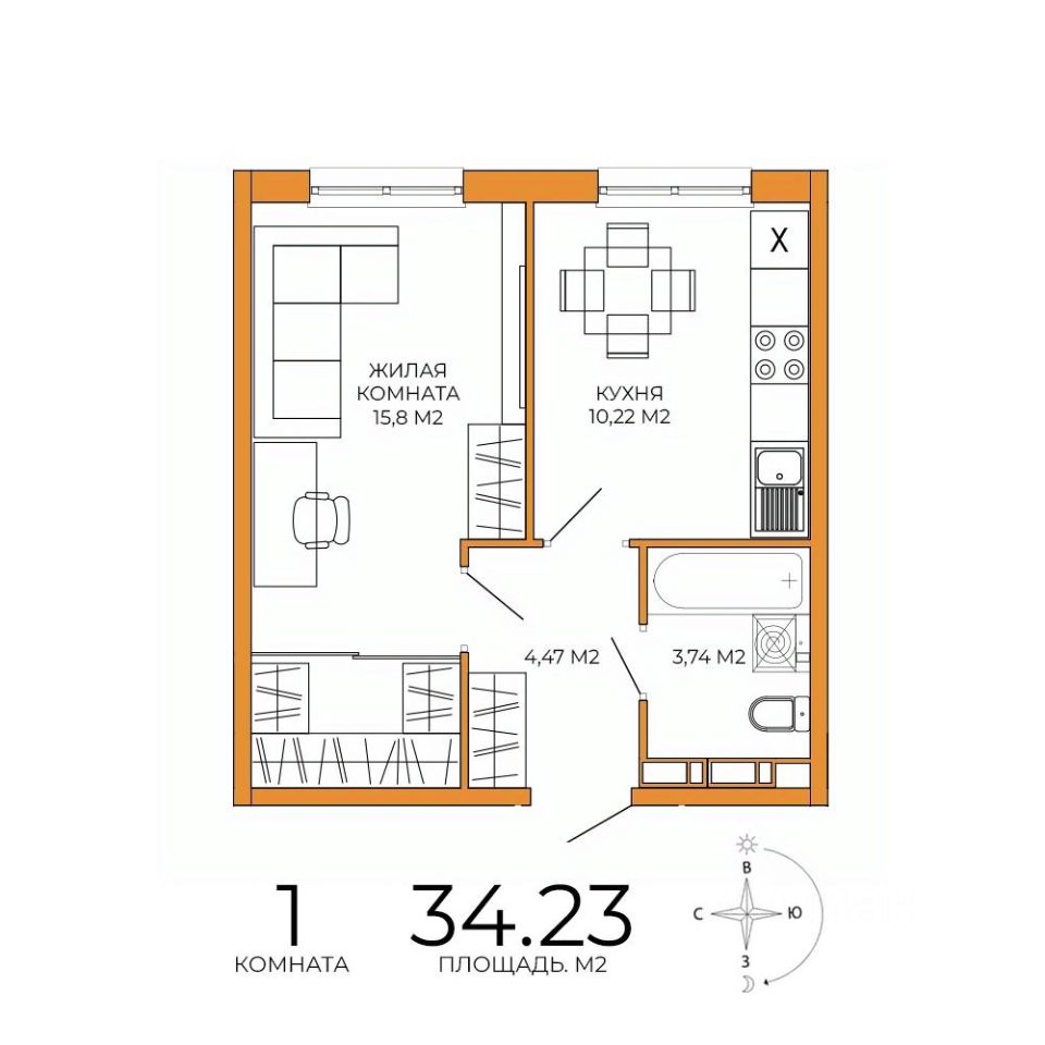 Продаётся 1-комнатная квартира в сданном доме (дом 9), срок сдачи: IV-кв. 2024, общей площадью 34.23 кв.м., на 9 этаже. Дизайнерская отделка.