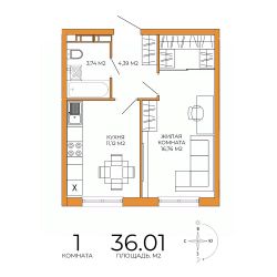 Продаётся 1-комнатная квартира в сданном доме (дом 9), срок сдачи: IV-кв. 2024, общей площадью 36.01 кв.м., на 11 этаже. Дизайнерская отделка.