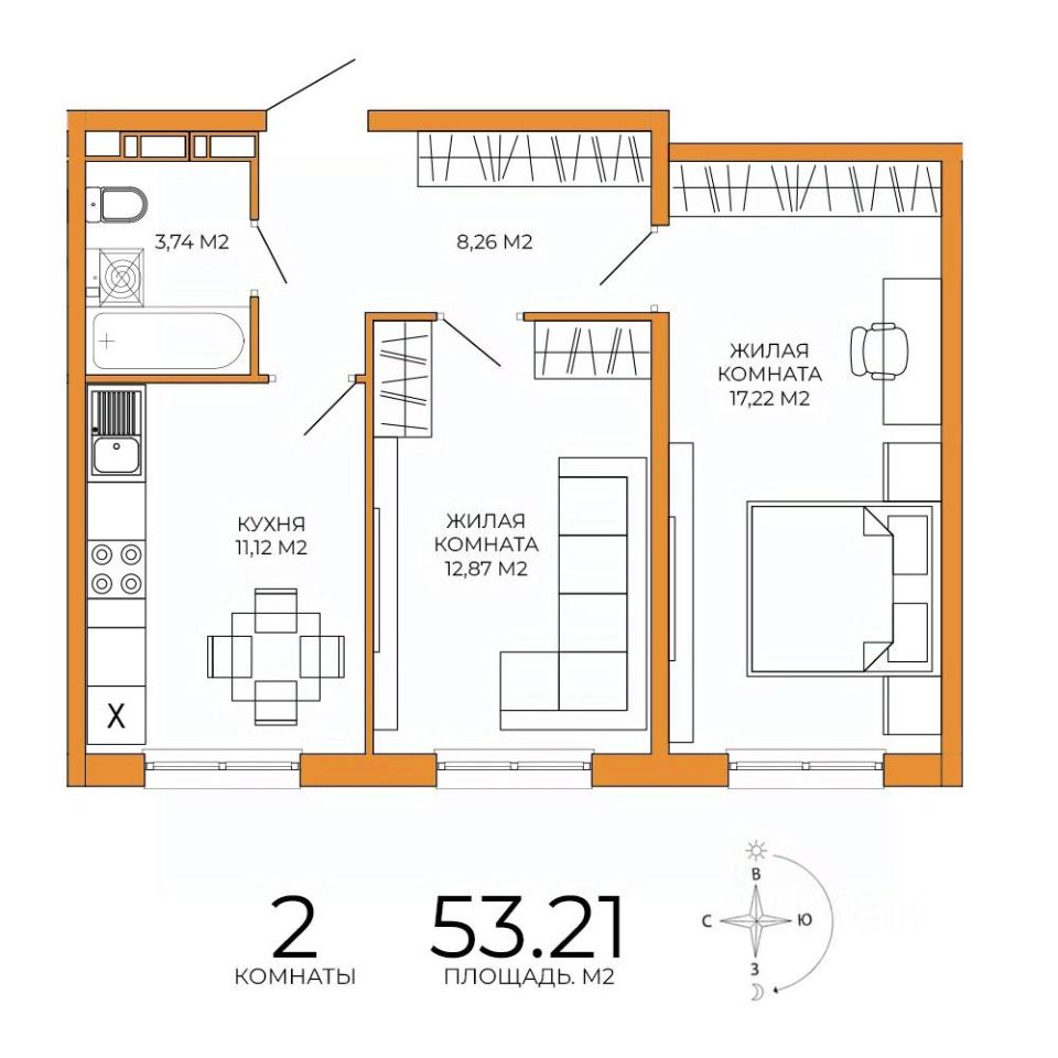 Продаётся 2-комнатная квартира в сданном доме (дом 9), срок сдачи: IV-кв. 2024, общей площадью 53.21 кв.м., на 12 этаже. Дизайнерская отделка.