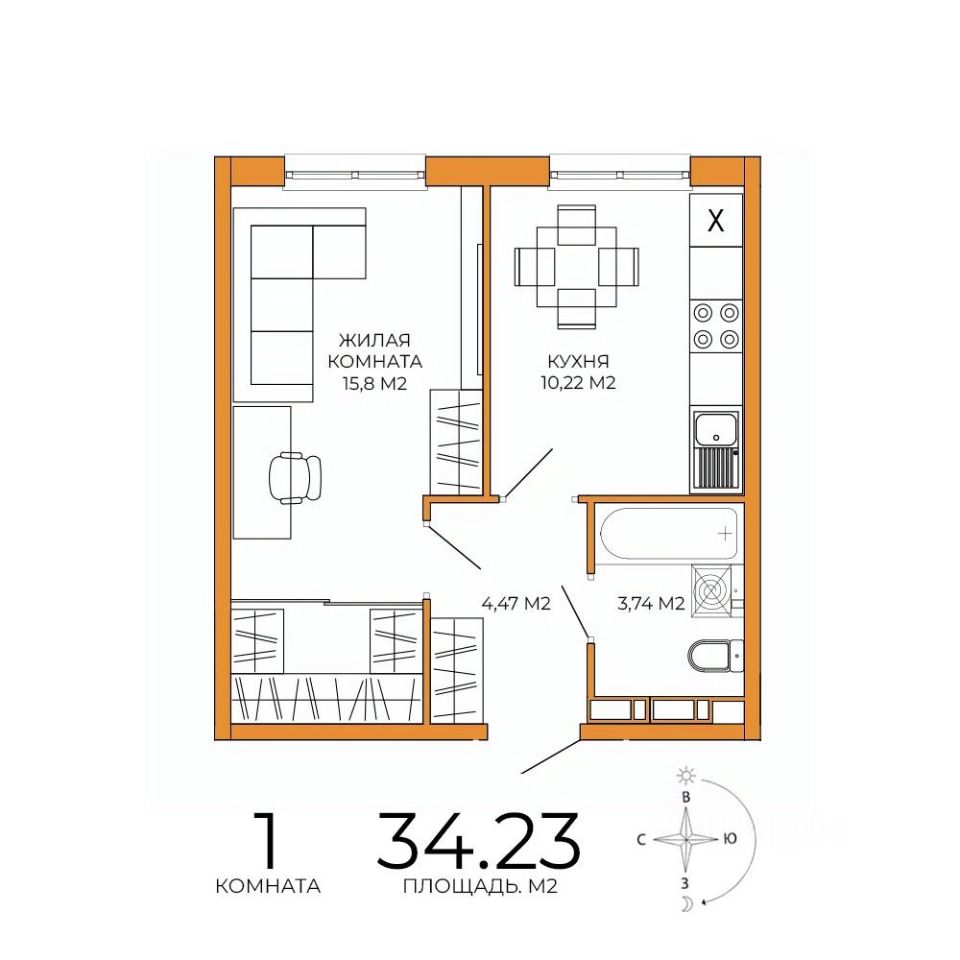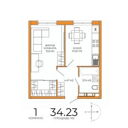 Продаётся 1-комнатная квартира в сданном доме (дом 9), срок сдачи: IV-кв. 2024, общей площадью 34.23 кв.м., на 14 этаже. Дизайнерская отделка.
