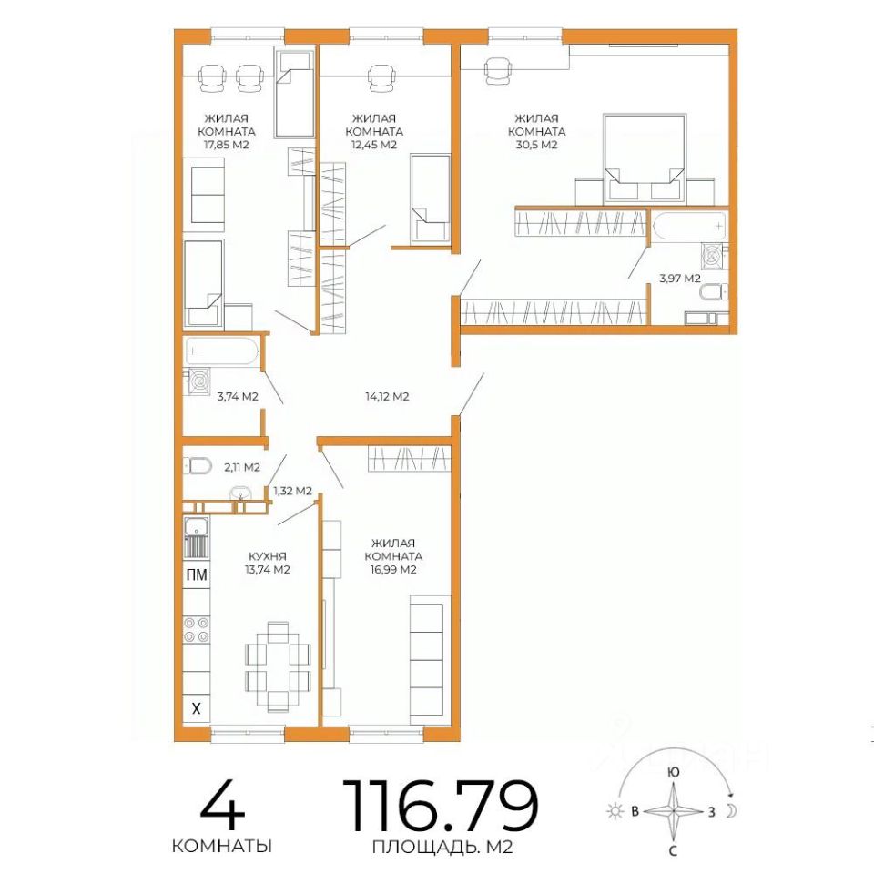 Продаётся 4-комнатная квартира в сданном доме (дом 9), срок сдачи: IV-кв. 2024, общей площадью 116.79 кв.м., на 2 этаже. Дизайнерская отделка.