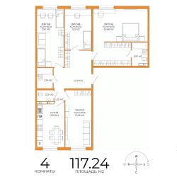 Продаётся 4-комнатная квартира в сданном доме (дом 9), срок сдачи: IV-кв. 2024, общей площадью 117.24 кв.м., на 5 этаже. Дизайнерская отделка.
