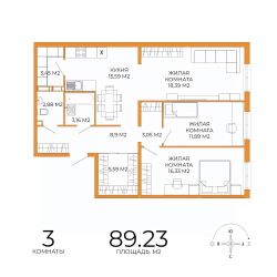 Продаётся 3-комнатная квартира в сданном доме (дом 9), срок сдачи: IV-кв. 2024, общей площадью 89.23 кв.м., на 8 этаже. Дизайнерская отделка.
