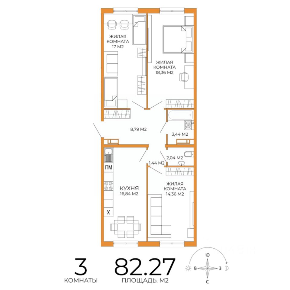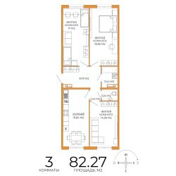 Продаётся 3-комнатная квартира в сданном доме (дом 9), срок сдачи: IV-кв. 2024, общей площадью 82.27 кв.м., на 3 этаже. Дизайнерская отделка.