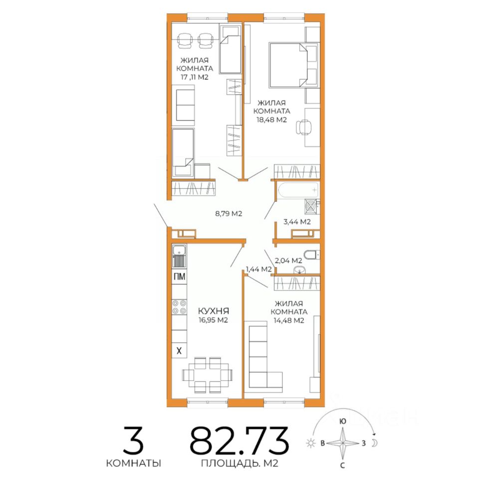 Продаётся 3-комнатная квартира в сданном доме (дом 9), срок сдачи: IV-кв. 2024, общей площадью 82.73 кв.м., на 14 этаже. Дизайнерская отделка.