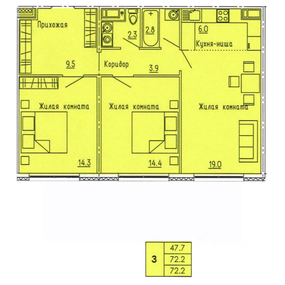 Продаётся 3-комнатная квартира в сданном доме (ул.Яшиной,12), срок сдачи: II-кв. 2024, общей площадью 72.2 кв.м., на 12 этаже. Дизайнерская отделка.