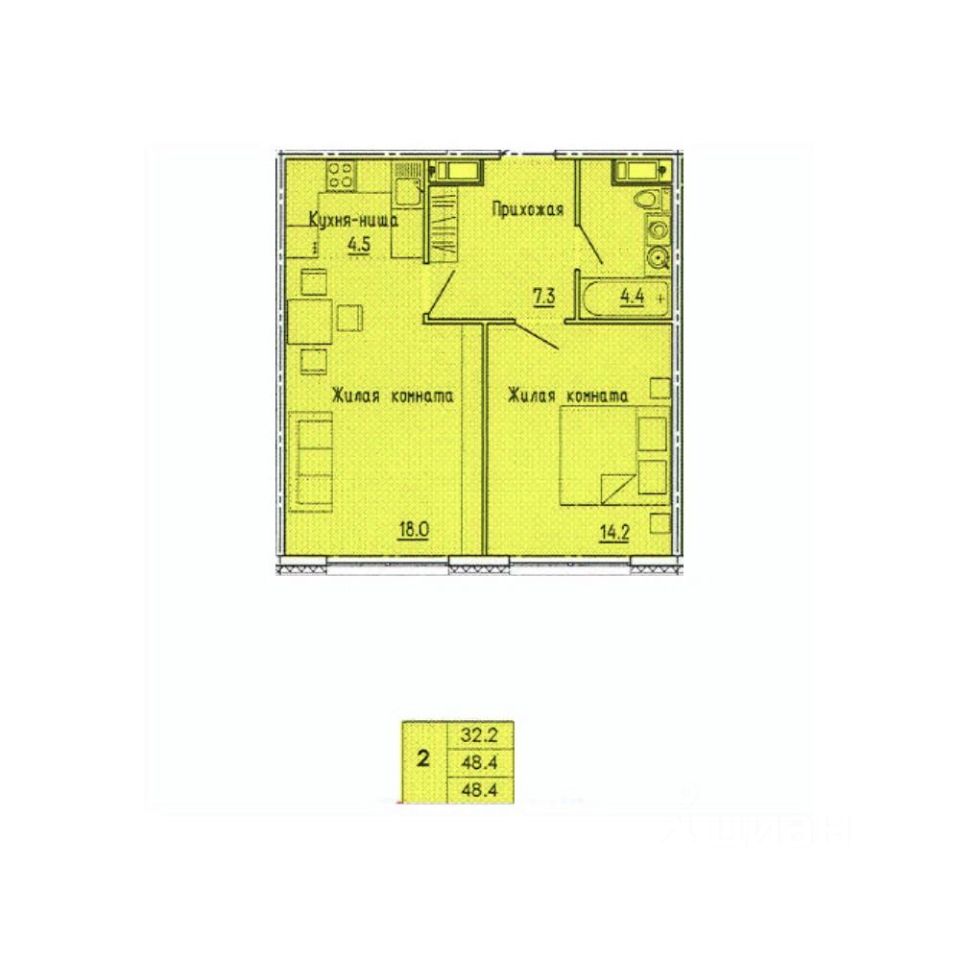 Продаётся 2-комнатная квартира в сданном доме (дом 16), срок сдачи: I-кв. 2024, общей площадью 48.4 кв.м., на 14 этаже. Дизайнерская отделка.