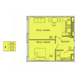 Продаётся 2-комнатная квартира в сданном доме (дом 16), срок сдачи: I-кв. 2024, общей площадью 47.3 кв.м., на 6 этаже. Дизайнерская отделка.