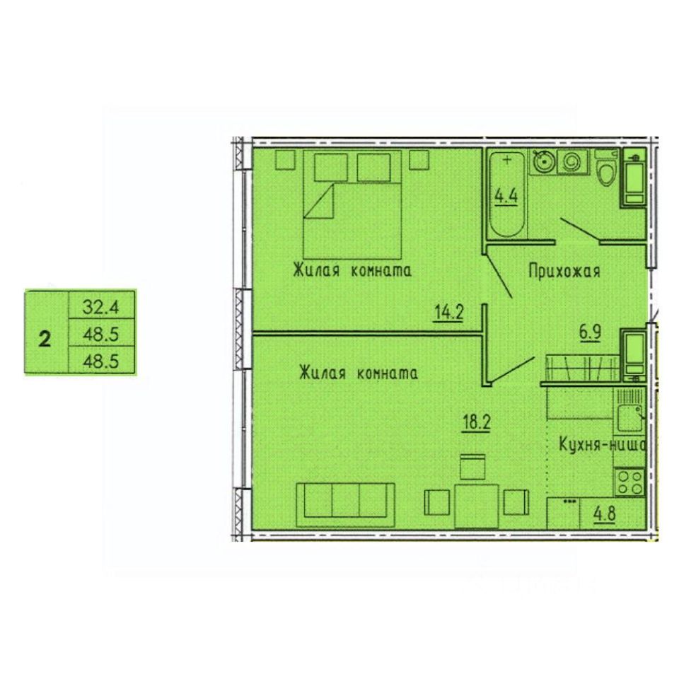 Продаётся 2-комнатная квартира в сданном доме (дом 16), срок сдачи: I-кв. 2024, общей площадью 48.5 кв.м., на 7 этаже. Дизайнерская отделка.