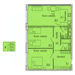 Продаётся 3-комнатная квартира в сданном доме (дом 16), срок сдачи: I-кв. 2024, общей площадью 72.5 кв.м., на 8 этаже. Дизайнерская отделка.