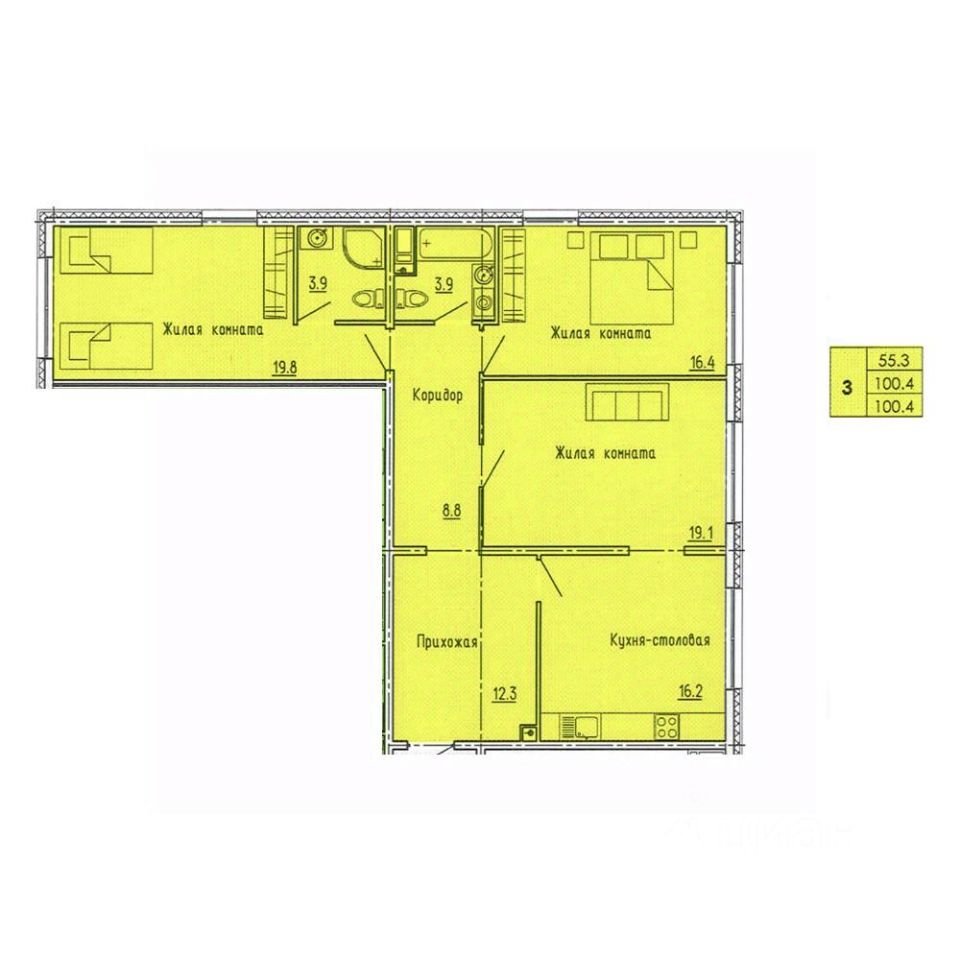 Продаётся 3-комнатная квартира в сданном доме (дом 16), срок сдачи: I-кв. 2024, общей площадью 100.4 кв.м., на 14 этаже. Дизайнерская отделка.