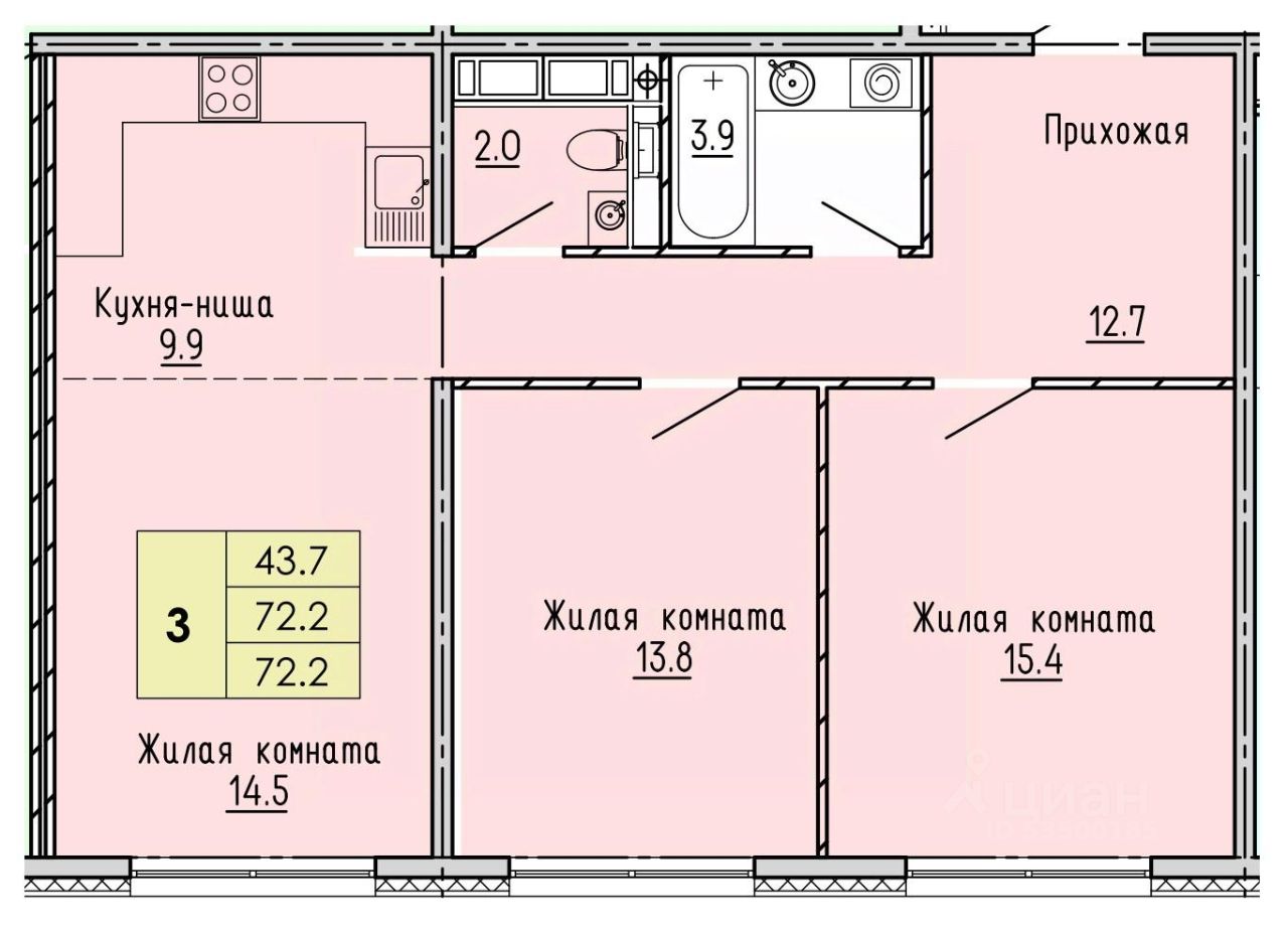 Продаётся 3-комнатная квартира в сданном доме (дом 19), срок сдачи: III-кв. 2023, общей площадью 72.2 кв.м., на 12 этаже. Дизайнерская отделка.