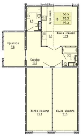 Продаётся 3-комнатная квартира в сданном доме (дом 19), срок сдачи: III-кв. 2023, общей площадью 93.3 кв.м., на 3 этаже. Дизайнерская отделка.