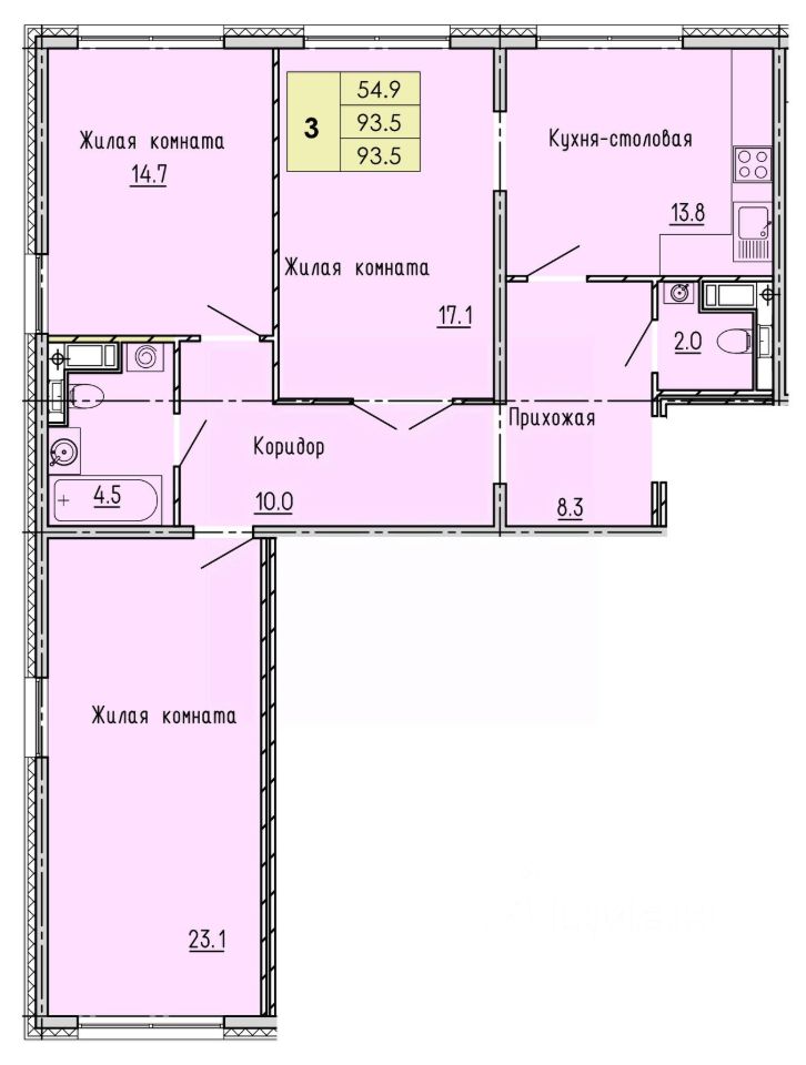Продаётся 3-комнатная квартира в сданном доме (дом 19), срок сдачи: III-кв. 2023, общей площадью 93.5 кв.м., на 14 этаже. Дизайнерская отделка.