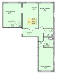 Продаётся 3-комнатная квартира в сданном доме (дом 19), срок сдачи: III-кв. 2023, общей площадью 89.6 кв.м., на 11 этаже. Дизайнерская отделка.