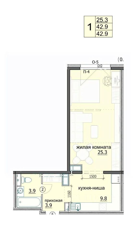 Продаётся 1-комнатная квартира в сданном доме (ул. Яшиной, 6), срок сдачи: II-кв. 2023, общей площадью 42.9 кв.м., на 18 этаже. Дизайнерская отделка.