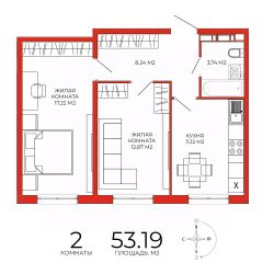 Продаётся 2-комнатная квартира в строящемся доме (дом 7), срок сдачи: III-кв. 2025, общей площадью 53.19 кв.м., на 13 этаже. Дизайнерская отделка.