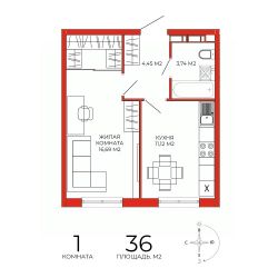 Продаётся 1-комнатная квартира в строящемся доме (дом 7), срок сдачи: III-кв. 2025, общей площадью 36 кв.м., на 18 этаже. Дизайнерская отделка.