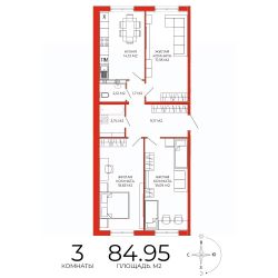 Продаётся 3-комнатная квартира в строящемся доме (дом 7), срок сдачи: III-кв. 2025, общей площадью 84.95 кв.м., на 18 этаже. Дизайнерская отделка.