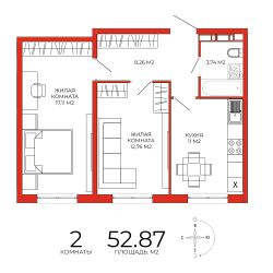 Продаётся 2-комнатная квартира в строящемся доме (дом 7), срок сдачи: III-кв. 2025, общей площадью 52.87 кв.м., на 5 этаже. Дизайнерская отделка.
