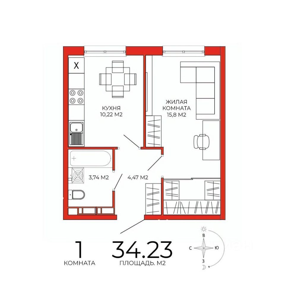 Продаётся 1-комнатная квартира в строящемся доме (дом 7), срок сдачи: III-кв. 2025, общей площадью 34.23 кв.м., на 13 этаже. Дизайнерская отделка.