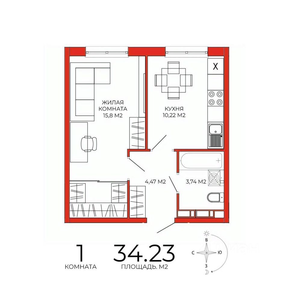 Продаётся 1-комнатная квартира в строящемся доме (дом 7), срок сдачи: III-кв. 2025, общей площадью 34.23 кв.м., на 13 этаже. Дизайнерская отделка.