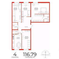 Продаётся 4-комнатная квартира в строящемся доме (дом 7), срок сдачи: III-кв. 2025, общей площадью 116.79 кв.м., на 2 этаже. Дизайнерская отделка.