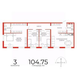 Продаётся 3-комнатная квартира в строящемся доме (дом 7), срок сдачи: III-кв. 2025, общей площадью 104.75 кв.м., на 3 этаже. Дизайнерская отделка.