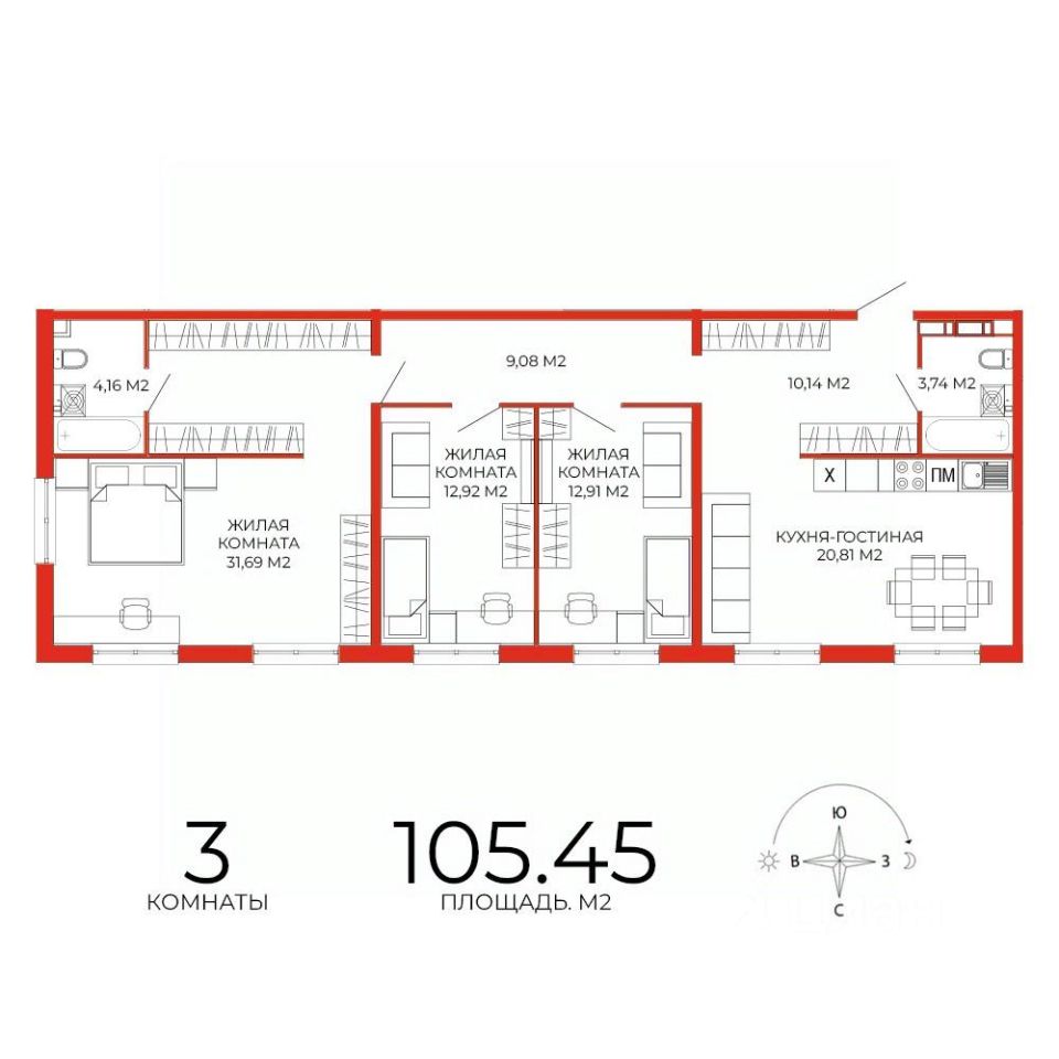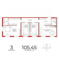 Продаётся 3-комнатная квартира в строящемся доме (дом 7), срок сдачи: III-кв. 2025, общей площадью 105.45 кв.м., на 7 этаже. Дизайнерская отделка.