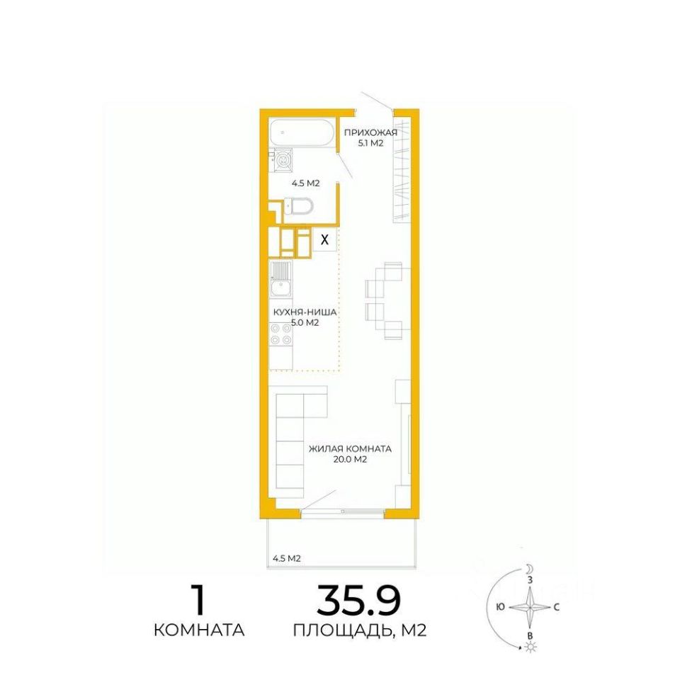 Продаётся 1-комнатная квартира в сданном доме (дом 13), срок сдачи: IV-кв. 2024, общей площадью 35.9 кв.м., на 11 этаже. Дизайнерская отделка.