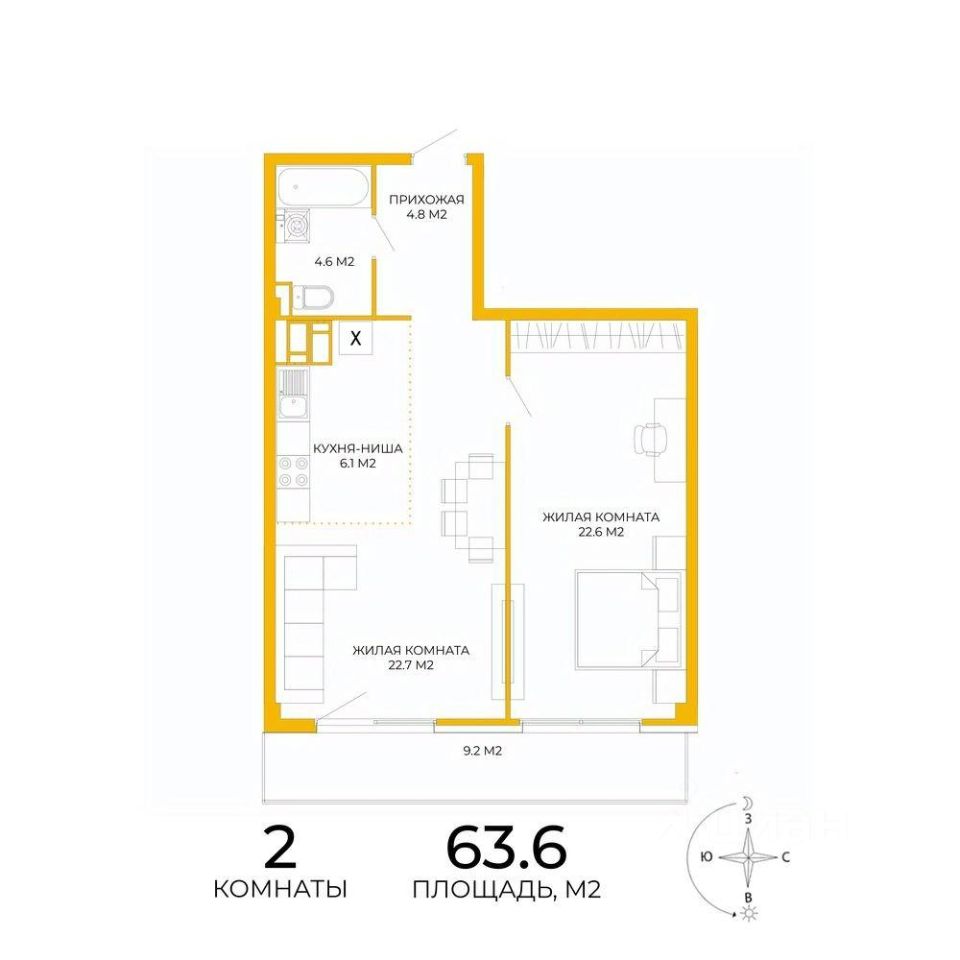 Продаётся 2-комнатная квартира в сданном доме (дом 13), срок сдачи: IV-кв. 2024, общей площадью 63.6 кв.м., на 11 этаже. Дизайнерская отделка.