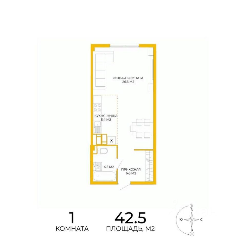 Продаётся 1-комнатная квартира в сданном доме (дом 13), срок сдачи: IV-кв. 2024, общей площадью 42.5 кв.м., на 12 этаже. Дизайнерская отделка.