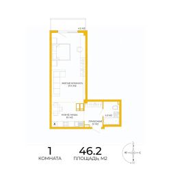 Продаётся 1-комнатная квартира в сданном доме (дом 13), срок сдачи: IV-кв. 2024, общей площадью 46.2 кв.м., на 17 этаже. Дизайнерская отделка.