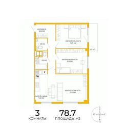 Продаётся 3-комнатная квартира в сданном доме (дом 13), срок сдачи: IV-кв. 2024, общей площадью 78.7 кв.м., на 17 этаже. Дизайнерская отделка.